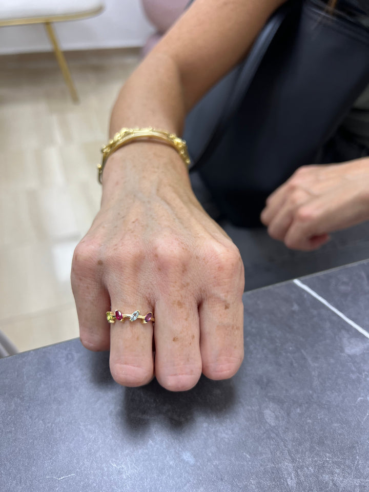 A birthstones ring to cherish your loved ones and keep them close to you. The gemstones can be customized according to the birthstones of your choice.