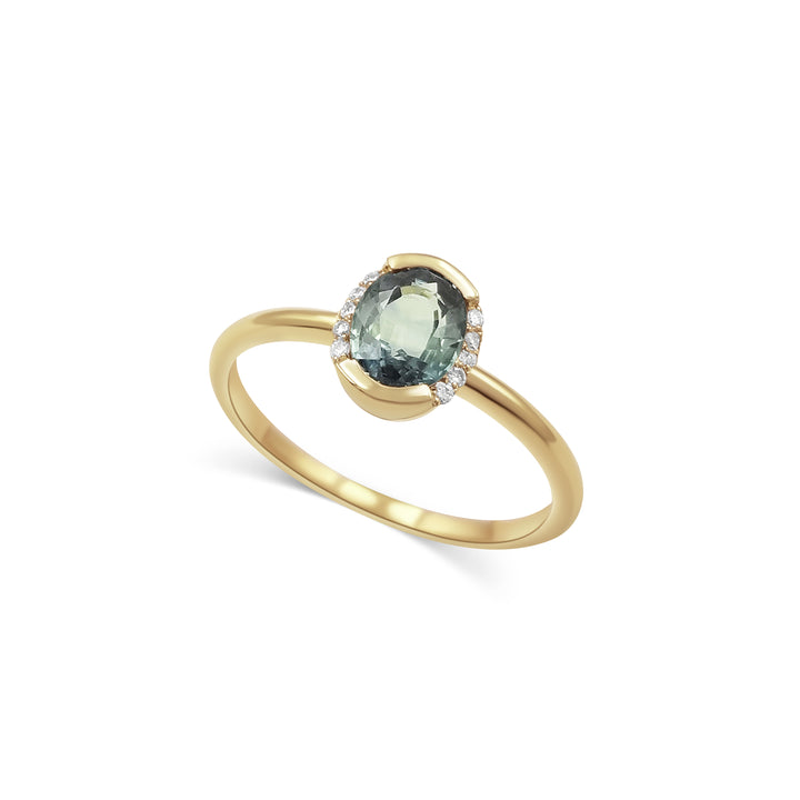 0.88 ct bluish green sapphire | 0.03 ct diamonds