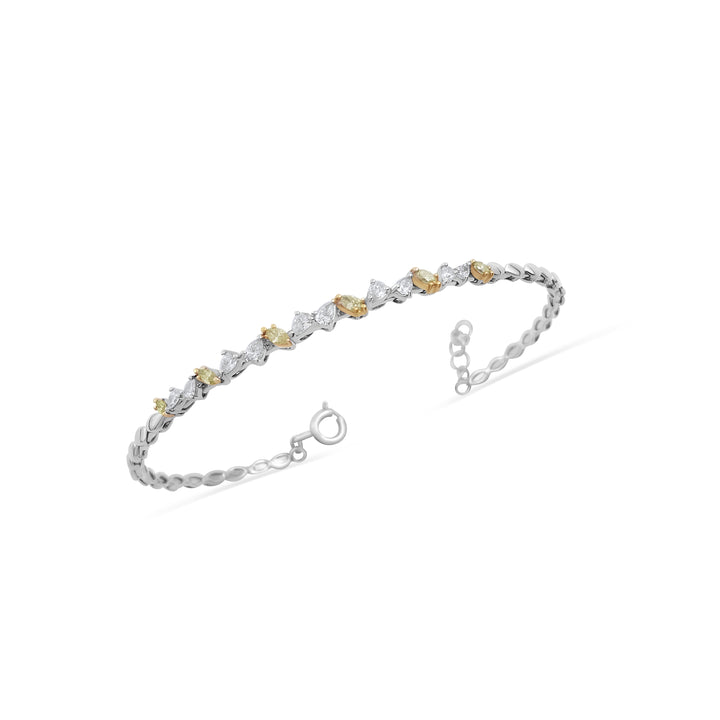 18K gold bangle with 0.51 ct pear and marquise white and yellow diamonds, scattered for the perfect brilliance.