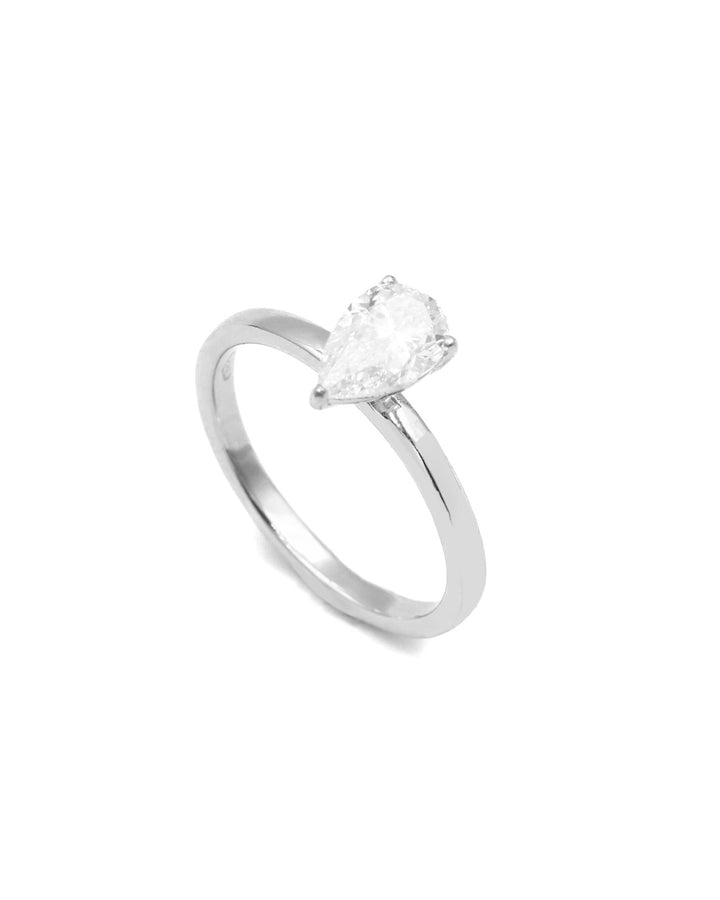 1ct pear shaped solitaire set in 18K white gold for the perfect elegance.