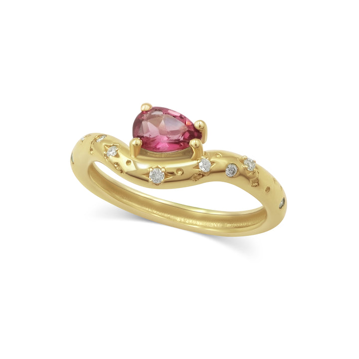 18K gold with 0.39 ct pink Tourmaline and 0.07ct diamonds.