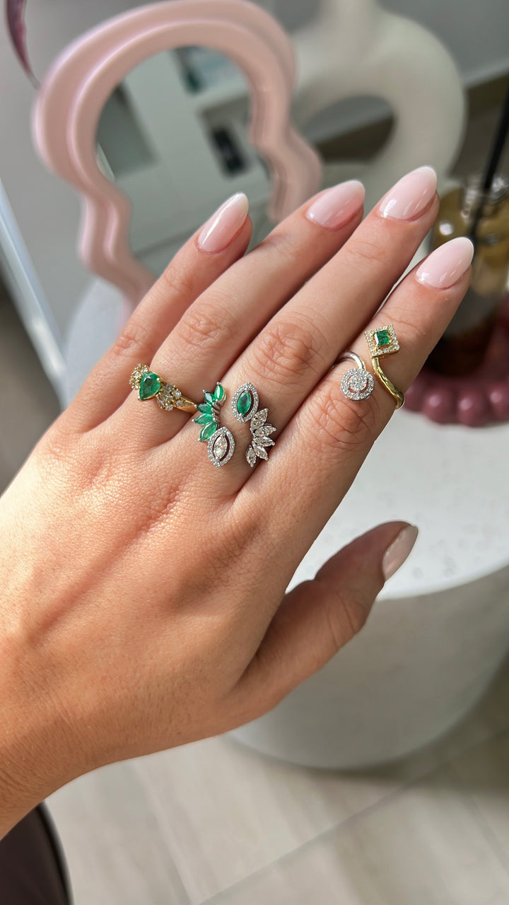 0.90ct diamonds and 1.03 ct emeralds, set in 18K white gold.