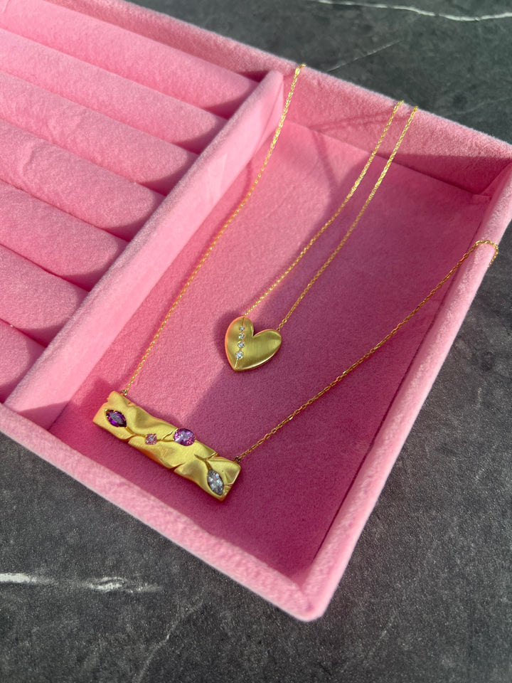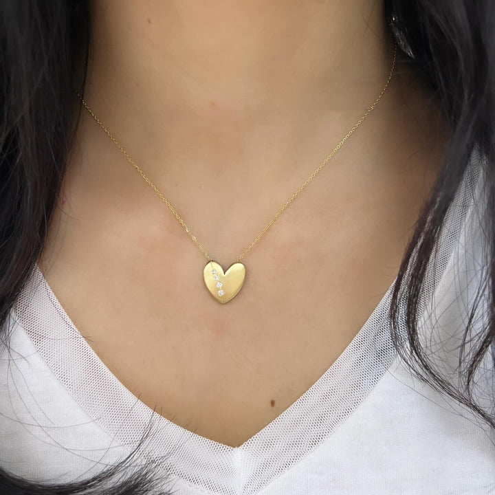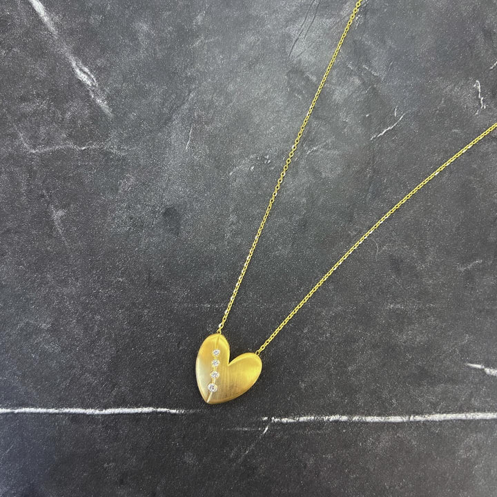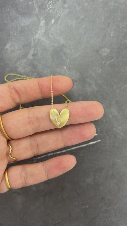 Our Imprint heart is a symbol of wearing and embracing your scars. Entirely handmade in 18K matte gold and 0.08 ct diamonds, this heart is a reminder to love yourself all the time.